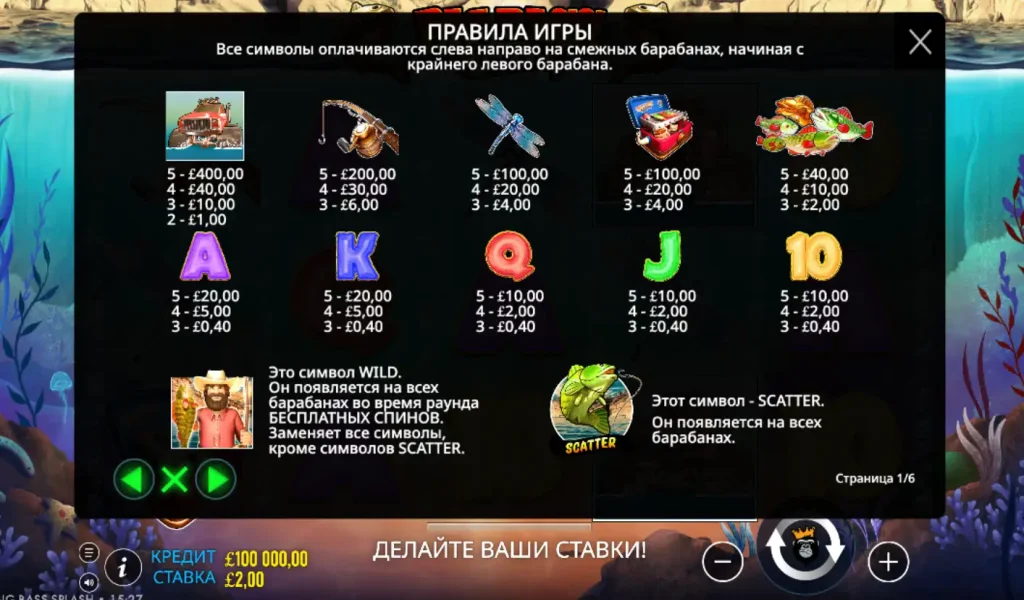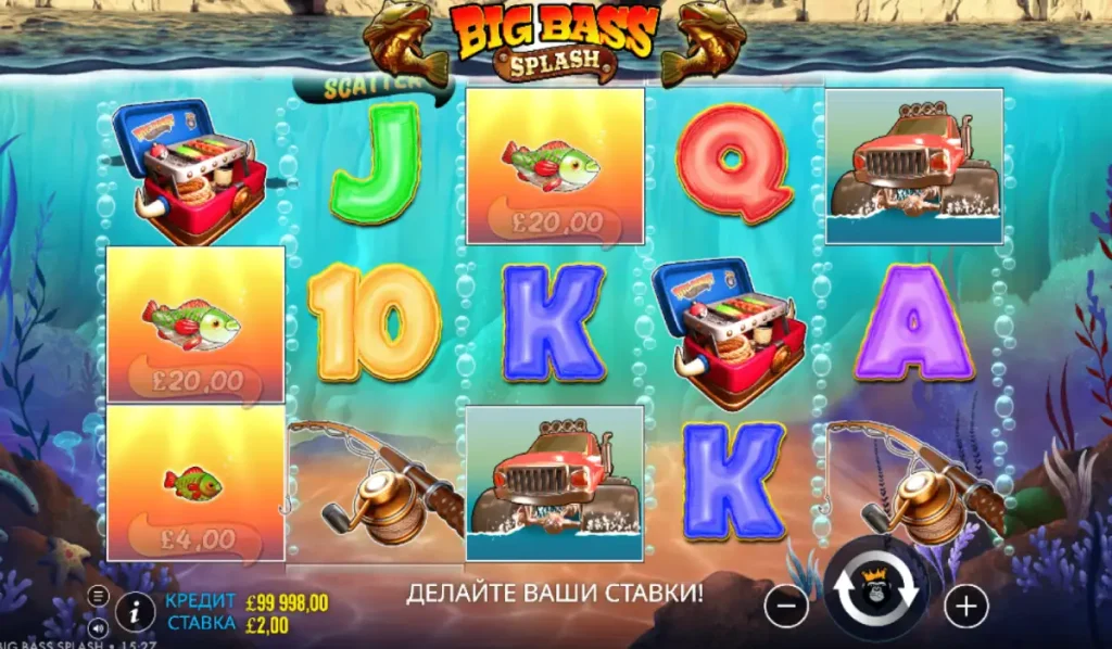Отправляйтесь на захватывающую рыбалку вместе с Big Bass Splash™ — динамичным видеослотом от провайдера Reel Kingdom. Игра разворачивается на барабанах 5×3 с 10 линиями выплат и предлагает увлекательные бонусные функции. Вас ждут символы с рыбаком, денежные рыбы, множители и бесплатные вращения. Максимальный выигрыш может достигать x5000 от вашей ставки, а высокая волатильность добавляет азарта и неожиданных поворотов в каждый спин. Уровень RTP составляет 95.67%, что делает слот привлекательным как для новичков, так и для опытных игроков.
